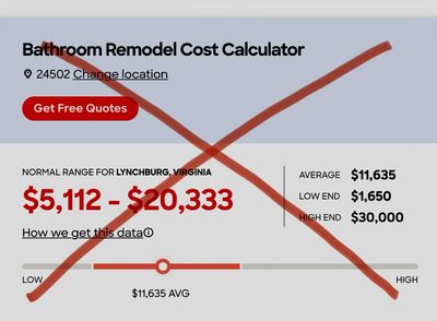 Many online sources list bathroom remodeling costs that are Average Bathroom Remodel Cost, which are highly misleading. A full bathroom remodel for $3,000? I’ve yet to see that happen in Lynchburg, VA. And a high-end remodel completed for $28K? That’s far from reality.