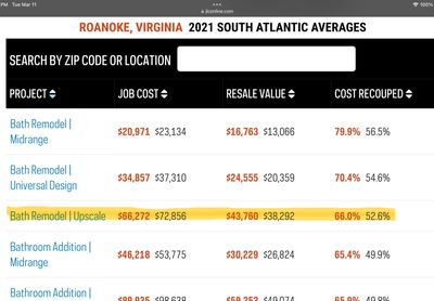 For example, if you remodel for $66,000 and recoup $35,000, your actual investment is $31,000—spread over 10 years, that’s just $260 per month for a bathroom you love.